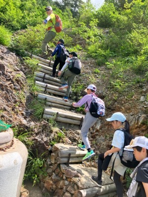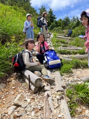 低学年はスタッフのサポートがあり、マンツーマンでその子のペースで歩き、全員登頂できました。かえりに「ふくべの大滝」もみてきました。国立公園は草花や虫を取ってはいけませんが、いつも夕日寺で笹の保全活動をしているので、つい笹の新芽をみると抜いてしまう子どもたち… 「え、これもぬいじゃだめなのか~」いいことしたつもりだったのかな??これも学びだね。