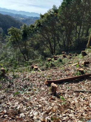 帰りはカメ割りに降り、イノシシが大運動会をした荒れた道を歩き、大休場からは来た道を戻り12:10ふるさと館に到着。皆んなで園長さんに伐採のお礼と眺望の感動を伝えて約1万歩の散策終了です。
